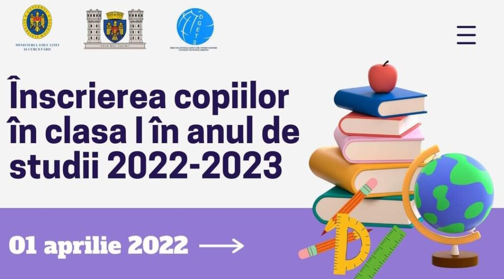 Se anunţă înscrierea copiilor în clasa Î-i pentru anul de studii 2022-2023 în IPLT „Liviu Deleanu” (str. L. Deleanu 5/4, tel. 51-63-46);