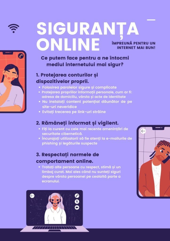 În această perioadă, sunt programate o serie de activități menite să informeze și să sensibilizeze elevii, părinții, cadrele didactice și întreaga comunitate despre rolul fiecăruia în educarea comportamentelor sigure și responsabile în mediul online.